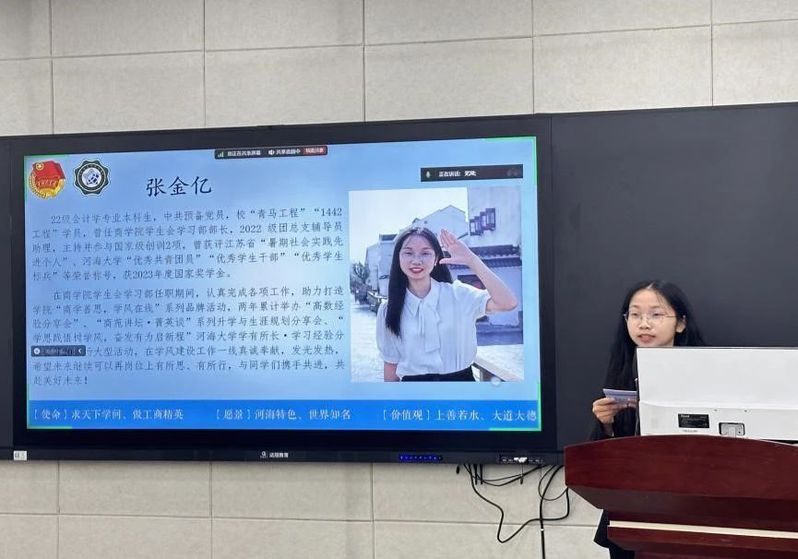 9499www威尼斯学生会第三十五届主席团成员陈雪阳同学做了题为《承前启后筑新梦,踔厉奋发谱华章》的工作报告。她总结了在过去的一年中9499www威尼斯学生会取得的优异工作成果:9499www威尼斯学生会始终注重商院学生的思想引领,通过多点开花,亮点纷呈,面上结果的活动架构力求加强9499www威尼斯学风建设。此外,9499www威尼斯学生会以且思且行,且悟且进为行为准则,时刻反思自我,充分发挥干部主观能动性,推动组织建设。同时,陈雪阳同学也对9499www威尼斯学生会做出以下展望,一是要筑牢思想基础,持续深化改革;二是强化服务意识,为学生权益“发声”;三是创新工作模式,保持组织特色;四是强化对外交流,开放包容新格局。