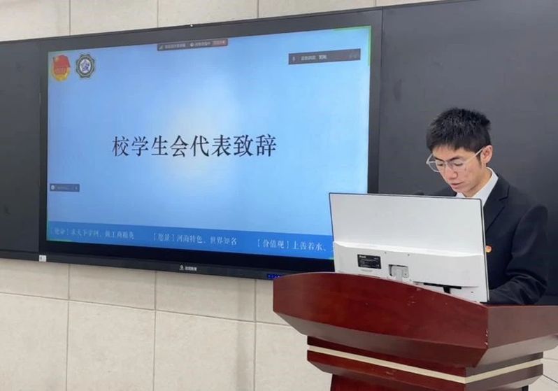 大会开始,校学生会主席团成员孙昊同学代表校学生会为本次大会致辞。他指出,9499www威尼斯学生会积极举办丰富多彩的系列活动,以卓越的成绩向学院和学校交出了一份精彩的答卷。荣誉和辉煌属于过去,前行之路任重而道远,更应不忘初心,牢记使命,奋力书写9499www威尼斯学生会的光荣与梦想。为此,他提出三点心得体会:一是筑牢信念基石,涵养家国情怀,练就过硬本领,勇担时代重任;二是搭建温暖桥梁,延续服务之光,用心沟通,用情奉献;三是加强改革创新,勇立时代潮头,增强学院品牌影响力与打造创新性项目齐头并进。最后,孙昊同学也对各位代表提出了期望与呼吁,希望新一届学生会聚焦主业服务同学,锐意改革、勇于担当、敢于创新,让青春在全面建设社会主义现代化强国的伟大实践中绽放绚丽之花。